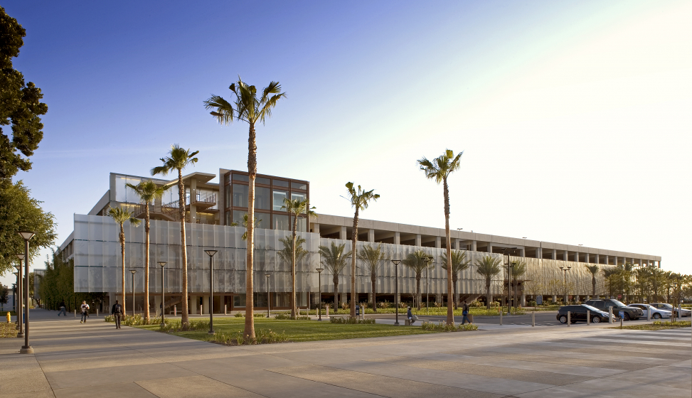 California State University, Fullerton’s 5-level, 2500-space parking structure provides a safe and welcoming facility for students and prominently defines a new entrance to the campus and the new Performing Arts Center. The design of the garage’s entry spaces, stairs and elevator lobbies are conducive to student interaction and promote cognitive way-finding and good pedestrian circulation.