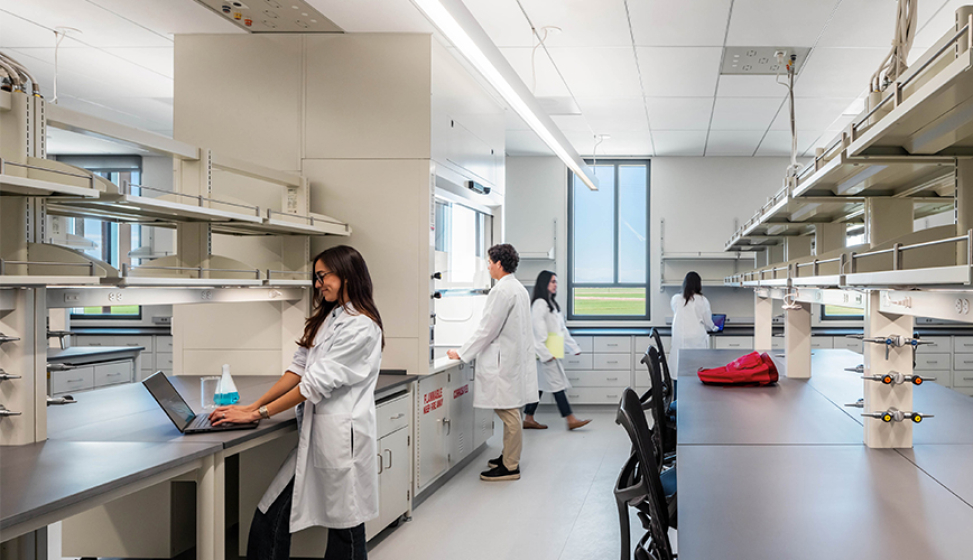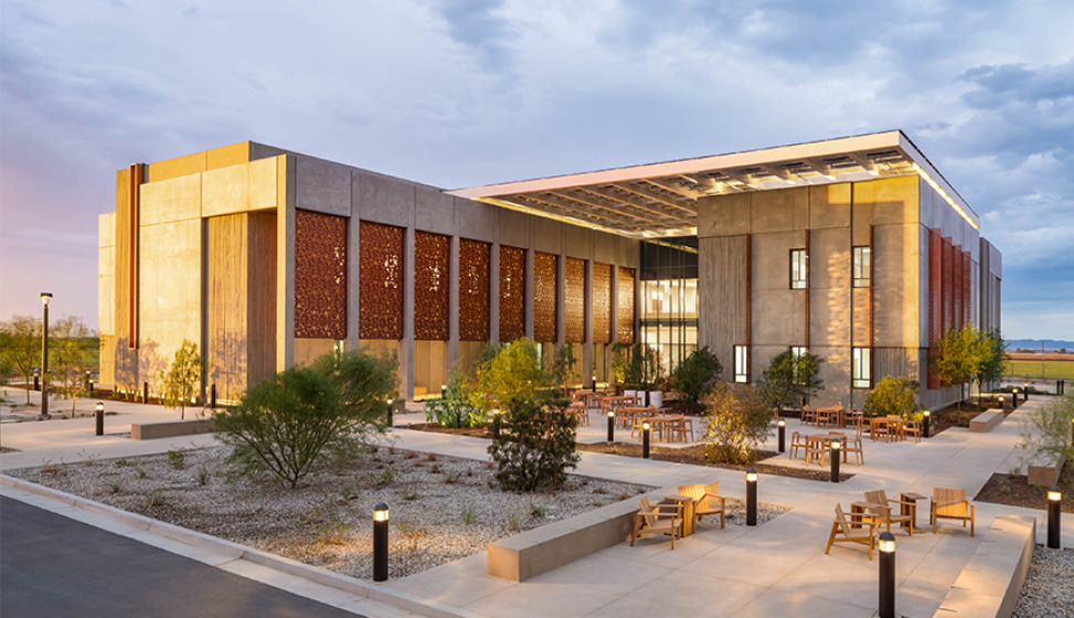 The Sciences and Engineering Laboratories at SDSU Imperial Valley, Brawley supports the burgeoning Lithium Valley and the university’s commitment to workforce development in both current and future geothermal energy sector demands through new four-year degree programs. The 37,000 square foot lab facility houses a STEM Innovation Hub, undergraduate science labs, core facilities, and collaborative spaces for public and private partners to work side by side with faculty and students in lithium research. The new building creates a sense of place and identity for the campus in Brawley, California.